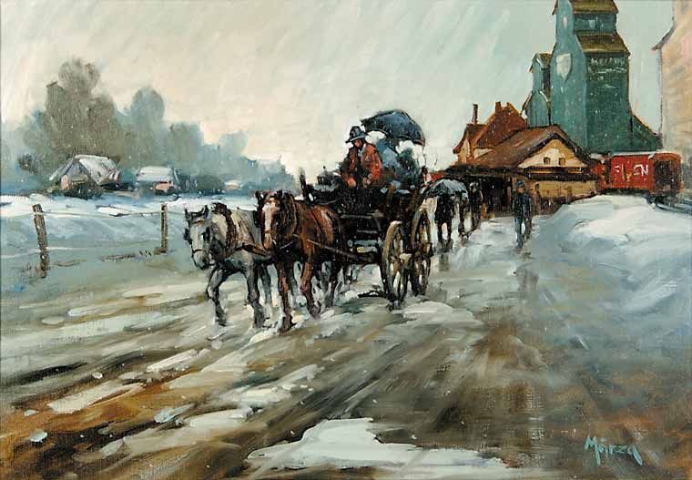 Ernest Marza ( 1923 - ) is a Canadian painter. Ernest Marza s works have been put up for auction numerous times, with realized prices surpassing estimated prices, varying from 425 USD for The Jazz Band in 2005 to 2500 USD for Slushy Day at the Station in 2006 , based on the size and medium of the artwork.