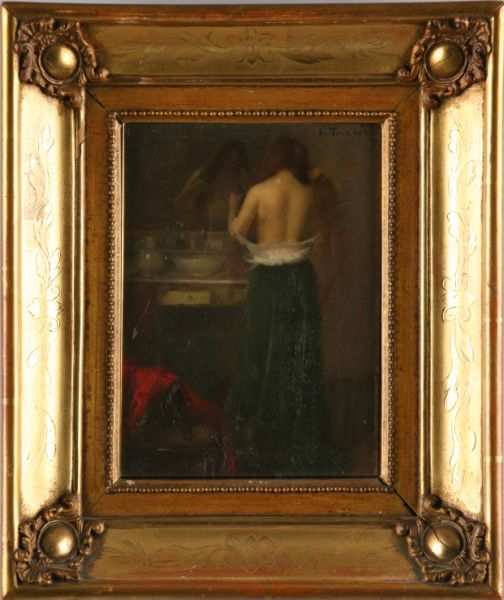 Etienne Tournes ( 1857 - 1931 ) was a French painter. Etienne Tournes s works have been put up for auction numerous times, with realized prices surpassing estimated prices, varying from 1500 USD for Femme à la rose in 2005 to 2000 USD for La Toilette in 2008 , based on the size and medium of the artwork.