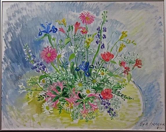 Eva Sophie Prager ( 1912 - ) is a Canadian painter. Eva Sophie Prager s works have been auctioned off multiple times, with realized prices varying according to the size and medium of the artwork, for instance of 83.22 USD for MIXED BOUQUET ON TABLE in 2014
