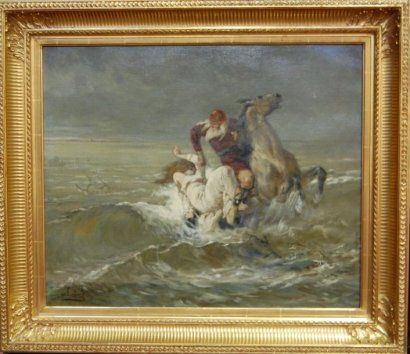 Evariste Vital Luminais ( 1822 - 1896 ) was a French painter. Evariste Vital Luminais s works have been put up for auction numerous times, with realized prices surpassing estimated prices, varying from 74.06 USD for Den barmhjertige samaritaner. in 2004 to 9316.27 USD for La halte in 2004 , based on the size and medium of the artwork.