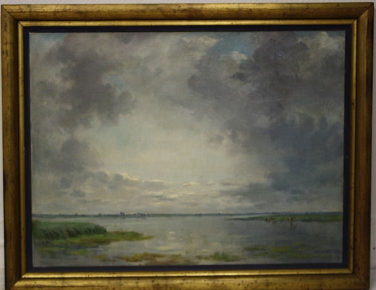 Evert Bomhof ( 1886 - 1949 ) was a Dutch painter. Evert Bomhof s works have been put up for auction numerous times, with realized prices varying from 312.24 USD for Landschap met grazende koeien in 2004 to 397.63 USD for Waterlandschap met koeien in de verte in 2015 , based on the size and medium of the artwork.