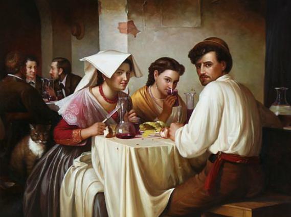 Evgenii Demakov ( 1968 - ) is a painter. Evgenii Demakov s works have been put up for auction numerous times, with realized prices surpassing estimated prices, varying from 286.2 USD for Young Russian girl with a pearl kokoshnik portrayed in profile in 2008 to 701.9 USD for Fra et romersk osteria. In a Roman Osteria in 2016 , based on the size and medium of the artwork.