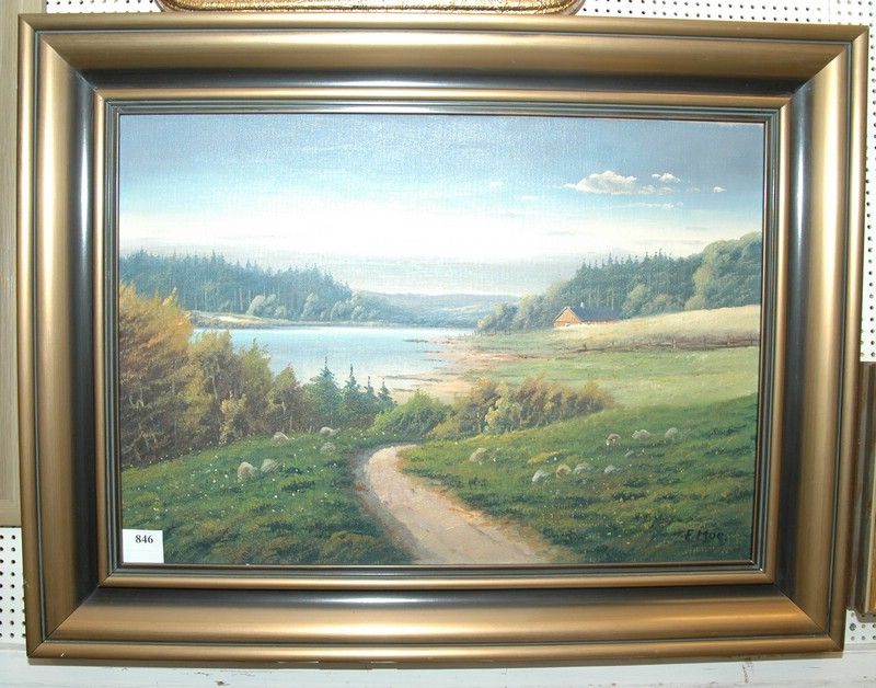 F Moe ( 1900 - ) is a Danish painter. F Moe s works have been put up for auction numerous times, with realized prices surpassing estimated prices, varying from USD for in to 350 USD for Vast landscape with river and houses in distance in 2005 , based on the size and medium of the artwork.