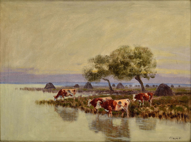 Ferenc Olgyai ( 1872 - 1939 ) was a Hungarian painter. Ferenc Olgyai s works have been put up for auction numerous times, with realized prices surpassing estimated prices, varying from 237 USD for Rose Trees by the Lake in 2010 to 1113.59 USD for Nap√°janie kr√°v in 2016 , based on the size and medium of the artwork.
