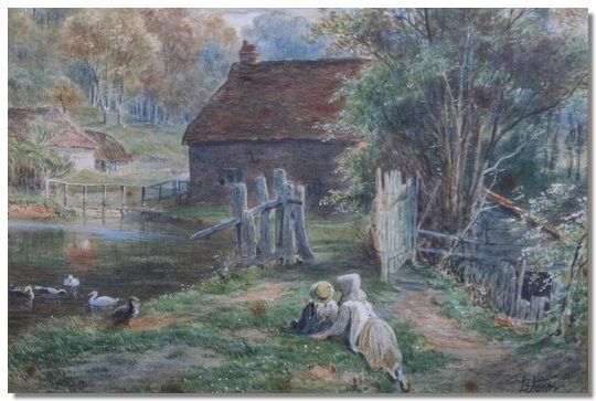 Foster ( - ) is a painter. Foster s works have been put up for auction numerous times, with realized prices varying from 110.5 USD for Children with sheep on a path in 2009 to 337.63 USD for Figures watching duck by a pond with cottage and woods beyond in 2009 , based on the size and medium of the artwork.