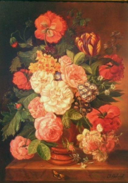 François Gabriel ( 1893 - 1993 ) was a French painter. François Gabriel s works have been auctioned off multiple times, with realized prices varying according to the size and medium of the artwork, for instance of 1600 USD for STILL LIFE WITH ROSES, PEONIES AND TULIPS ON A LEDGE in 2006