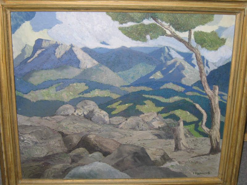 Frank Sapousek ( 1902 - 1993 ) was an American painter. Frank Sapousek s works have been auctioned off multiple times, with realized prices varying according to the size and medium of the artwork, for instance of 475 USD for MOUNTAIN STORM in 2006