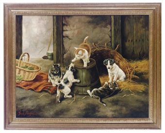 Frank Stratford ( - ) is a British painter. Frank Stratford s works have been auctioned off multiple times, with realized prices varying according to the size and medium of the artwork, for instance of 2500 USD for Puppies playing with kittens in a barn; and a companion painting in 2009