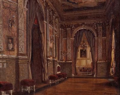 Franz Schütz ( 1855 - 1945 ) was a painter. Franz Schütz s works have been auctioned off multiple times, with realized prices varying according to the size and medium of the artwork, for instance of 459.15 USD for Saal in einem barocken Stadtpalais in 2010