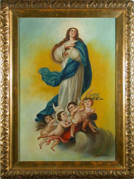 Franz Wagner ( 1857 - ) is a German painter. Franz Wagner s works have been put up for auction numerous times, with realized prices surpassing estimated prices, varying from 67.8 USD for Mondsichelmadonna auf einer Wolke, zu Ihren Füßen vier Putten in 2006 to 1512.71 USD for On the Albertina ramp in 2009 , based on the size and medium of the artwork.