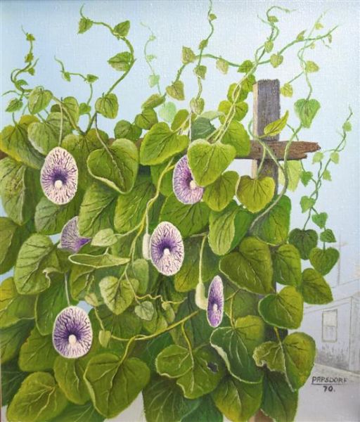 Fred Papsdorf ( 1887 - 1978 ) was an American painter. Fred Papsdorf s works have been put up for auction numerous times, with realized prices surpassing estimated prices, varying from 300 USD for LANDSCAPE WITH MUSHROOMS in 2004 to 1159 USD for A Group of Five Works in 2009 , based on the size and medium of the artwork.