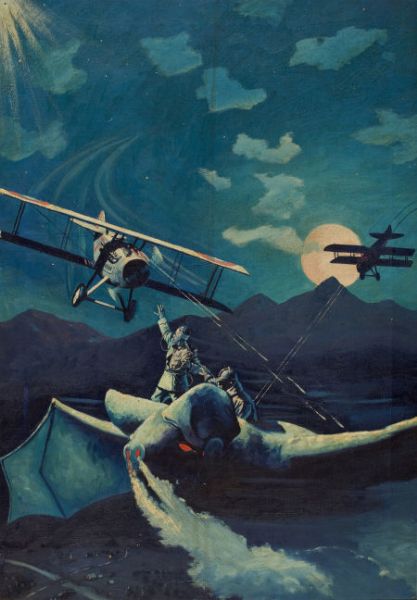 Frederick Blakeslee ( 1898 - 1975 ) was an American painter. Frederick Blakeslee s works have been put up for auction numerous times, with realized prices surpassing estimated prices, varying from 4500 USD for Freight train at grain silo on the plains in 2004 to 5462 USD for German, French and British planes in dogfight over countryside. in 2007 , based on the size and medium of the artwork.
