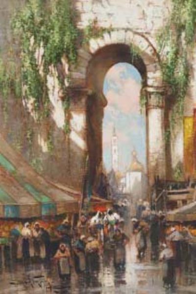 Frederick John Bartram Hiles ( 1872 - 1927 ) was a British painter. Frederick John Bartram Hiles s works have been put up for auction numerous times, with realized prices surpassing estimated prices, varying from 77.57 USD for Low Tide, unloading the catch in 2007 to 1228.64 USD for MARKET SCENE, MOROCCO in 2008 , based on the size and medium of the artwork.