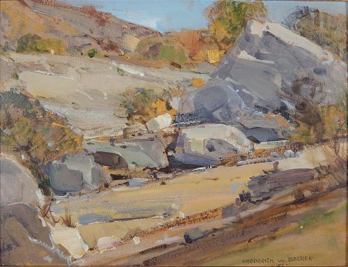 Frederick W Becker ( 1888 - 1974 ) was a painter. Frederick W Becker s works have been put up for auction numerous times, with realized prices varying from 450 USD for Aspen trees in a landscape, in 2013 to 650 USD for Western Landscape in 2015 , based on the size and medium of the artwork.