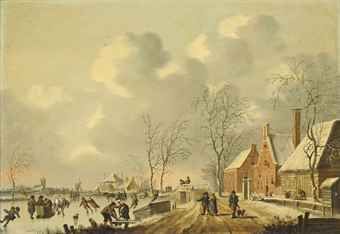 Fredericus Theodorus Renard ( 1778 - 1820 ) was a Dutch painter. Fredericus Theodorus Renard s works have been put up for auction numerous times, with realized prices surpassing estimated prices, varying from 4563.73 USD for THE DIEMEN TOLL GATE AT THE OUTERWALER BRIDGE, AMSTERDAM; THE TOLL GATE AT SLOTERDIJK, AMSTERDAM in 2005 to 10341.76 USD for A frozen winter landscape with skaters in 2011 ,
