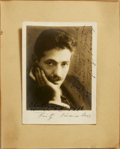 Fritz Kreisler ( - ) is a painter. Fritz Kreisler s works have been auctioned off multiple times, with realized prices varying according to the size and medium of the artwork, for instance of 72 USD for Joseph Chodek in 2006