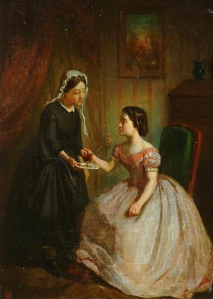 G Compte calix ( - 1850 ) was a painter. G Compte calix s works have been auctioned off multiple times, with realized prices varying according to the size and medium of the artwork, for instance of 66.48 USD for The Evening Glass in 2008