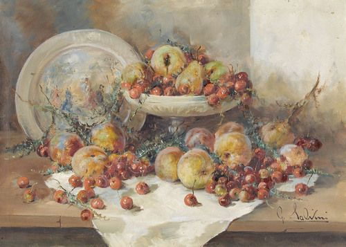 G Salvini ( 1900 - ) is a painter. G Salvini s works have been put up for auction numerous times, with realized prices surpassing estimated prices, varying from 253.08 USD for Peaches, pears grapes and watermelon on a table in 2004 to 1359.56 USD for Stillleben mit Kirschen und Pfirsichen in 2009 , based on the size and medium of the artwork.