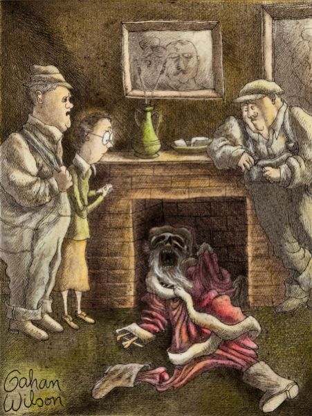 Gahan Wilson ( 1930 - ) is an American painter. Gahan Wilson s works have been put up for auction numerous times, with realized prices surpassing estimated prices, varying from 450 USD for untitle in 2004 to 2400 USD for Must You Bring That Up Every Time We Have an Argument? in 2013 , based on the size and medium of the artwork.