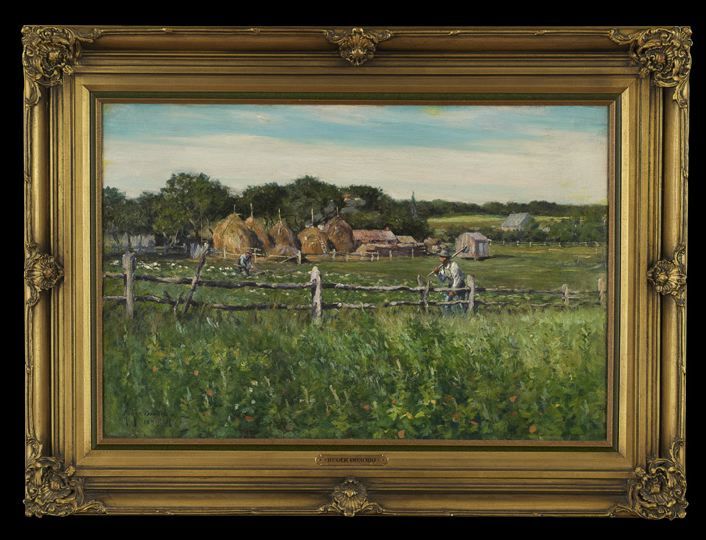 Gaines Ruger Donoho ( 1857 - 1916 ) was an American painter. Gaines Ruger Donoho s works have been put up for auction numerous times, with realized prices surpassing estimated prices, varying from 200 USD for FRENCH VILLAGE SCENES in 2004 to 29520 USD for Ploughmen in a Fenced Field in 2011 , based on the size and medium of the artwork.