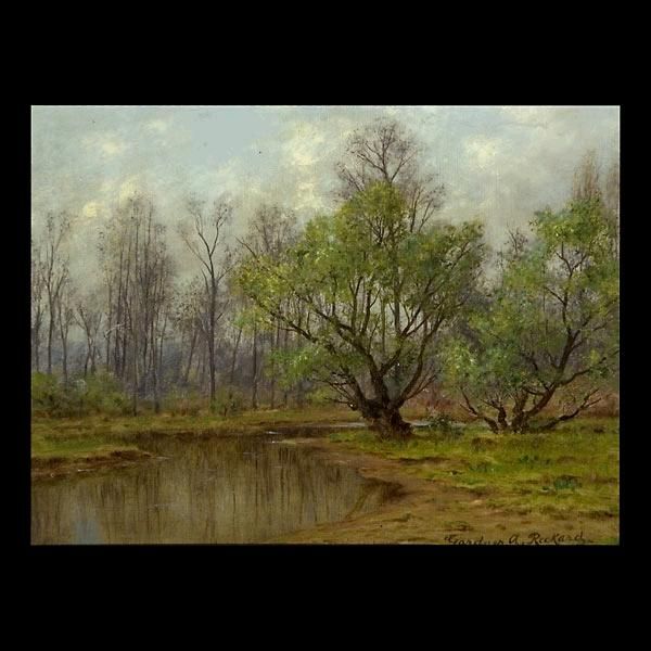Gardner Arnold Reckhard ( 1858 - 1908 ) was an American painter. Gardner Arnold Reckhard s works have been put up for auction numerous times, with realized prices surpassing estimated prices, varying from 2875 USD for EARLY FALL LANDSCAPE in 2005 to 3600 USD for Boats Along the Shore in 2005 , based on the size and medium of the artwork.