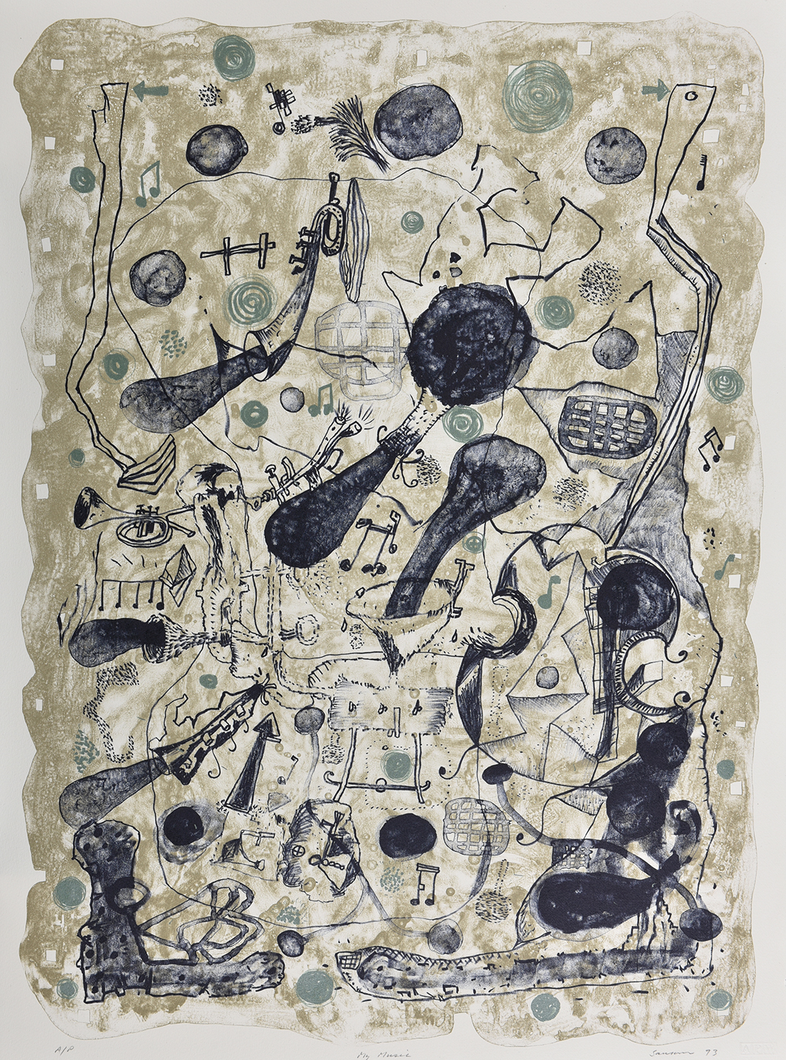 Gareth Sansom ( 1939 - ) is an Australian painter. Gareth Sansom s works have been auctioned off multiple times, with realized prices varying according to the size and medium of the artwork, for instance of 304.96 USD for My Music in 2016