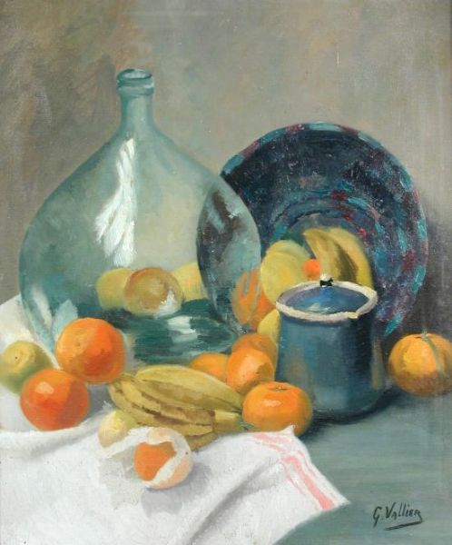 Genevieve Vallier ( 1900 - ) is a French painter. Genevieve Vallier s works have been auctioned off multiple times, with realized prices varying according to the size and medium of the artwork, for instance of 87.28 USD for Still life of oranges, bananas and a large glass jar in 2015