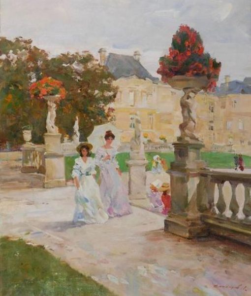 Gennady Yelizarov ( 1950 - ) is a Russian painter. Gennady Yelizarov s works have been auctioned off multiple times, with realized prices varying according to the size and medium of the artwork, for instance of 413.07 USD for Frauen im Schloßpark in 2013
