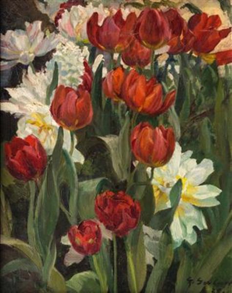 Georg Gerlach ( 1874 - 1962 ) was a German painter. Georg Gerlach s works have been put up for auction numerous times, with realized prices surpassing estimated prices, varying from 486.98 USD for Salzburg in winter in 2011 to 1502.4 USD for Stillleben mit Pfingstrosen und Tulpen in 2014 , based on the size and medium of the artwork.