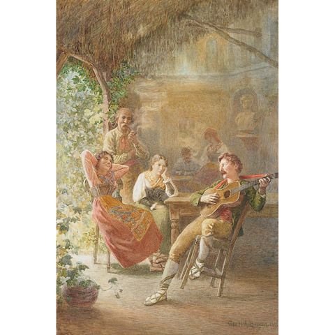 George Henry Alan Brown ( 1862 - ) is a British painter. George Henry Alan Brown s works have been put up for auction numerous times, with realized prices surpassing estimated prices, varying from 165.89 USD for Evening light on the road to Shotwick in 2005 to 789.04 USD for THE LOVE SONG in 2011 , based on the size and medium of the artwork.