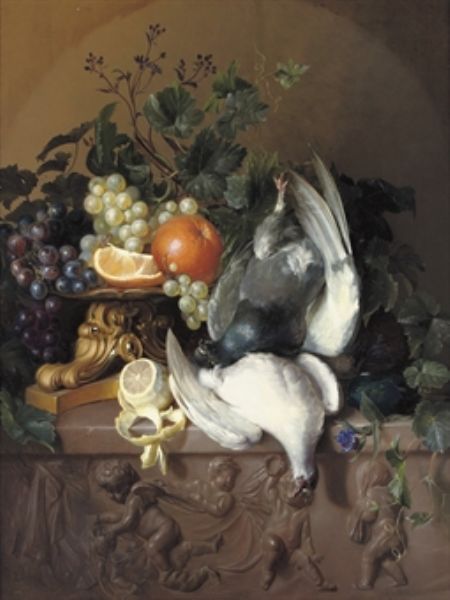 George Jacobus Johannes Van Os ( 1805 - 1841 ) was a Dutch painter. George Jacobus Johannes Van Os s works have been auctioned off multiple times, with realized prices varying according to the size and medium of the artwork, for instance of 18770.25 USD for Fruits and poultry on a stone ledge in 2008