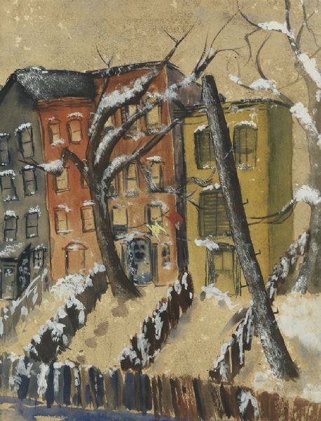 Geraldine Hamilton Mccullough ( 1922 - ) is an American painter. Geraldine Hamilton Mccullough s works have been put up for auction numerous times, with realized prices varying from 2300 USD for Dancing at the Circle Pine Recreation Center, Delton, Michigan in 2005 to 2750 USD for Rowhouses in the Winter in 2014 , based on the size and medium of the artwork.