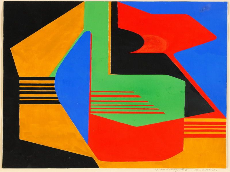 Gerd Nordenskjöld ( 1913 - ) is a Swedish painter. Gerd Nordenskjöld s works have been put up for auction numerous times, with realized prices surpassing estimated prices, varying from 1044.05 USD for Konkret komposition in 2004 to 1353.09 USD for Utan titel in 2010 , based on the size and medium of the artwork.