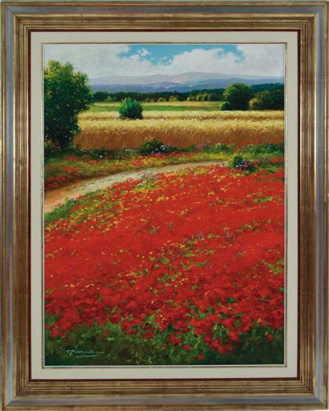 Gerhard Neswadba ( 1941 - ) is a painter. Gerhard Neswadba s works have been put up for auction numerous times, with realized prices surpassing estimated prices, varying from 95.43 USD for Blick in blühenden Sommergarten in 2009 to 1000 USD for ROLLING HILLS WITH RED POPPY FIELD in 2013 , based on the size and medium of the artwork.