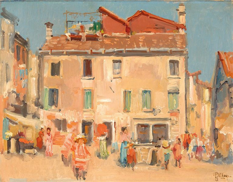 Gerrit Willem Knap ( 1873 - 1931 ) was a Dutch painter. Gerrit Willem Knap s works have been put up for auction numerous times, with realized prices surpassing estimated prices, varying from 425 USD for PALAZZO SEVERI in 2005 to 14564.21 USD for VIEW OF THE PRINSENGRACHT BETWEEN THE AMSTEL AND THE UTRECHTSESTRAAT, AMSTERDAM in 2007 , based on the size and medium of the artwork.