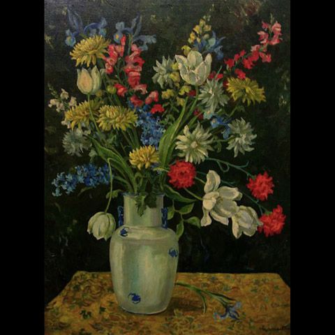Gert Louis Lamartine ( 1898 - 1965 ) was a Canadian painter. Gert Louis Lamartine s works have been put up for auction numerous times, with realized prices surpassing estimated prices, varying from 117.62 USD for MIXED BOUQUET IN AN ORIENTAL BLUE AND WHITE VASE in 2010 to 1473.25 USD for FLOWERS IN A ORIENTAL VASE in 2013 , based on the size and medium of the artwork.