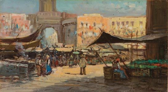 Giovanni Scognamiglio ( 1900 - ) is an Italian painter. Giovanni Scognamiglio s works have been put up for auction numerous times, with realized prices surpassing estimated prices, varying from 225.38 USD for Figures at an Italianate market in 2004 to 1851.12 USD for La Zingarella in 2013 , based on the size and medium of the artwork.