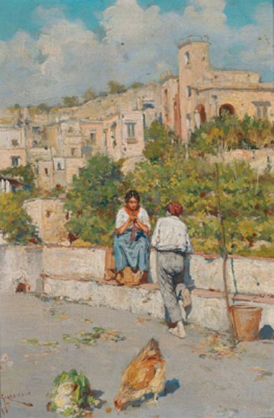 Giueseppe Giardiello ( 1887 - 1920 ) was a painter. Giueseppe Giardiello s works have been put up for auction numerous times, with realized prices surpassing estimated prices, varying from 778.63 USD for Pescatori in 2008 to 1386.69 USD for After the Market in 2008 , based on the size and medium of the artwork.