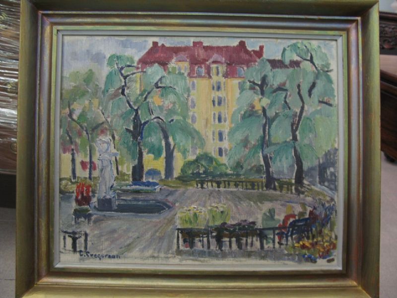 Gun Gregorsson ( - ) is a painter. Gun Gregorsson s works have been put up for auction numerous times, with realized prices surpassing estimated prices, varying from 16.43 USD for Gata in 2008 to 57.49 USD for Mosebacketorg in 2008 , based on the size and medium of the artwork.