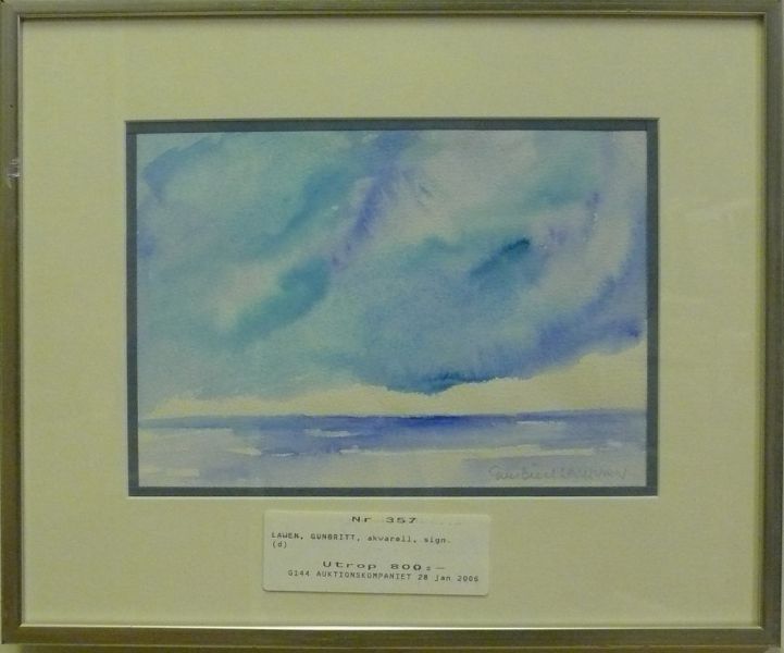 Gunbritt Lawen ( - ) is a painter. Gunbritt Lawen s works have been auctioned off multiple times, with realized prices varying according to the size and medium of the artwork, for instance of 97.05 USD for Komposition med blommor ansikte in 2010