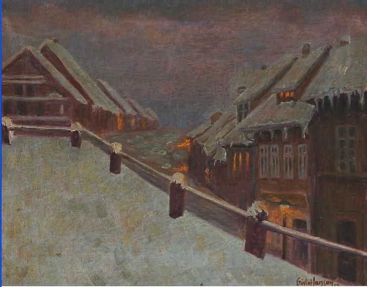 Gustaf Larsson ( - ) is a painter. Gustaf Larsson s works have been put up for auction numerous times, with realized prices surpassing estimated prices, varying from 31.06 USD for Amsterdam in 2014 to 128.67 USD for Winter day, presumably in Norway. in 2014 , based on the size and medium of the artwork.