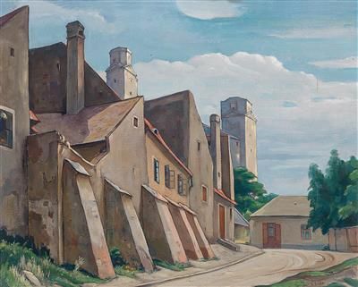 Gustav Schütt ( 1890 - 1968 ) was an Austrian painter. Gustav Schütt s works have been put up for auction numerous times, with realized prices surpassing estimated prices, varying from 287.52 USD for A landscape with a bridge and tall trees in 2004 to 2012.15 USD for Houses on the street in 2013 , based on the size and medium of the artwork.