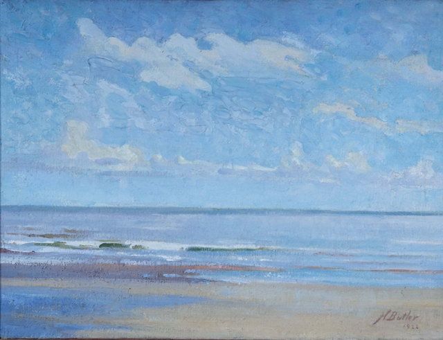 H Butler ( 1900 - ) is a British painter. H Butler s works have been put up for auction numerous times, with realized prices varying from 60.02 USD for Landscape with cattle watering, church tower in the distance, in 2004 to 240 USD for BLUE VASE OF FLOWERS in 2008 , based on the size and medium of the artwork.