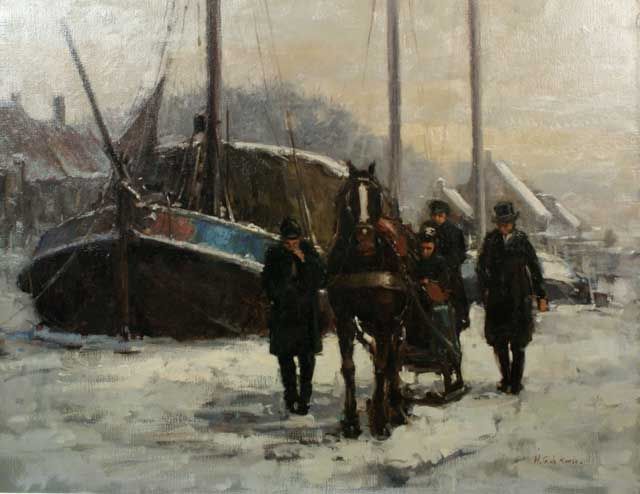H De Korte ( 1930 - ) is a painter. H De Korte s works have been put up for auction numerous times, with realized prices varying from 292.54 USD for A GOOD BOOK in 2007 to 766.6 USD for Bargesand walkers by the waterside in 2008 , based on the size and medium of the artwork.