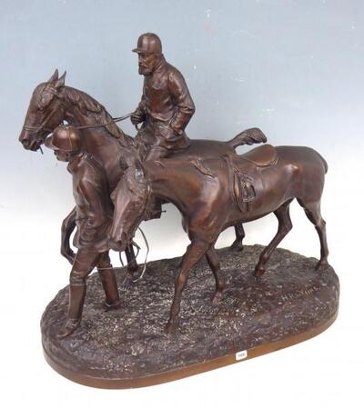 H R De Vains ( - ) is a French painter. H R De Vains s works have been put up for auction numerous times, with realized prices surpassing estimated prices, varying from 1200 USD for HORSE AND JOCKEY DOWN in 2006 to 2395.12 USD for Jument et son poulain in 2012 , based on the size and medium of the artwork.