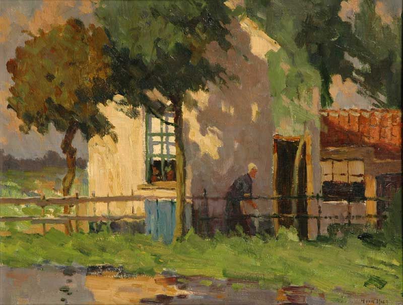 H Van Riet ( 1900 - ) is a painter. H Van Riet s works have been put up for auction numerous times, with realized prices varying from 41.6 USD for Vaas met papaver in 2005 to 129.64 USD for Rode rozen in 2007 , based on the size and medium of the artwork.