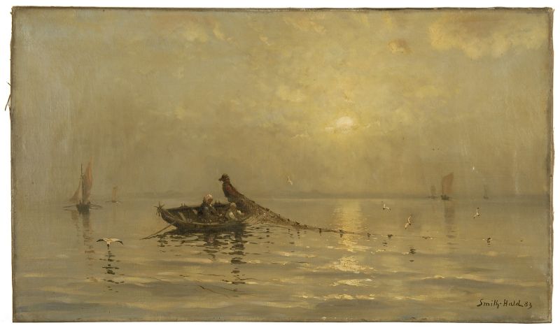 Hald Frijthof Smith ( 1846 - 1903 ) was a Norwegian painter. Hald Frijthof Smith s works have been auctioned off multiple times, with realized prices varying according to the size and medium of the artwork, for instance of 9200 USD for Fishermen under a sunset sky. in 2010