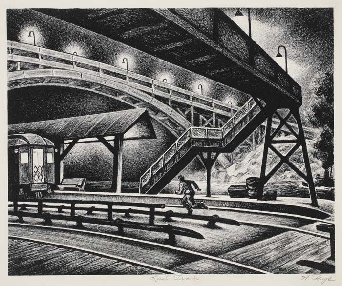 Harold Faye ( 1910 - 1980 ) was an American painter. Harold Faye s works have been put up for auction numerous times, with realized prices surpassing estimated prices, varying from 650 USD for Coal Dock. in 2006 to 2200 USD for Last Train. in 2006 , based on the size and medium of the artwork.