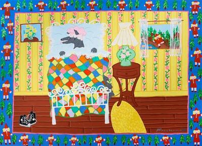 Harry Fonseca ( 1946 - ) is an American painter. Harry Fonseca s works have been put up for auction numerous times, with realized prices varying from 1304 USD for Blue Shoes in 2011 to 1875 USD for Little Red Riding Hood in 2017 , based on the size and medium of the artwork.