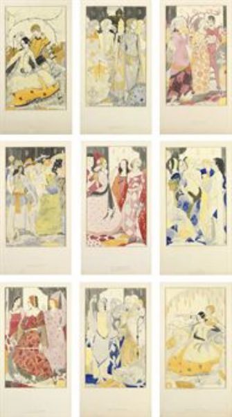 Harry Harvey Clarke ( 1890 - 1931 ) was a British painter. Harry Harvey Clarke s works have been put up for auction numerous times, with realized prices surpassing estimated prices, varying from 117 USD for 'Braunstore', woodland scene in 2005 to 88585.29 USD for Nine full-scale preparatory studies for a series of stained glass panels, illustrating John Millington Synge's poem Queens in 2009 , b